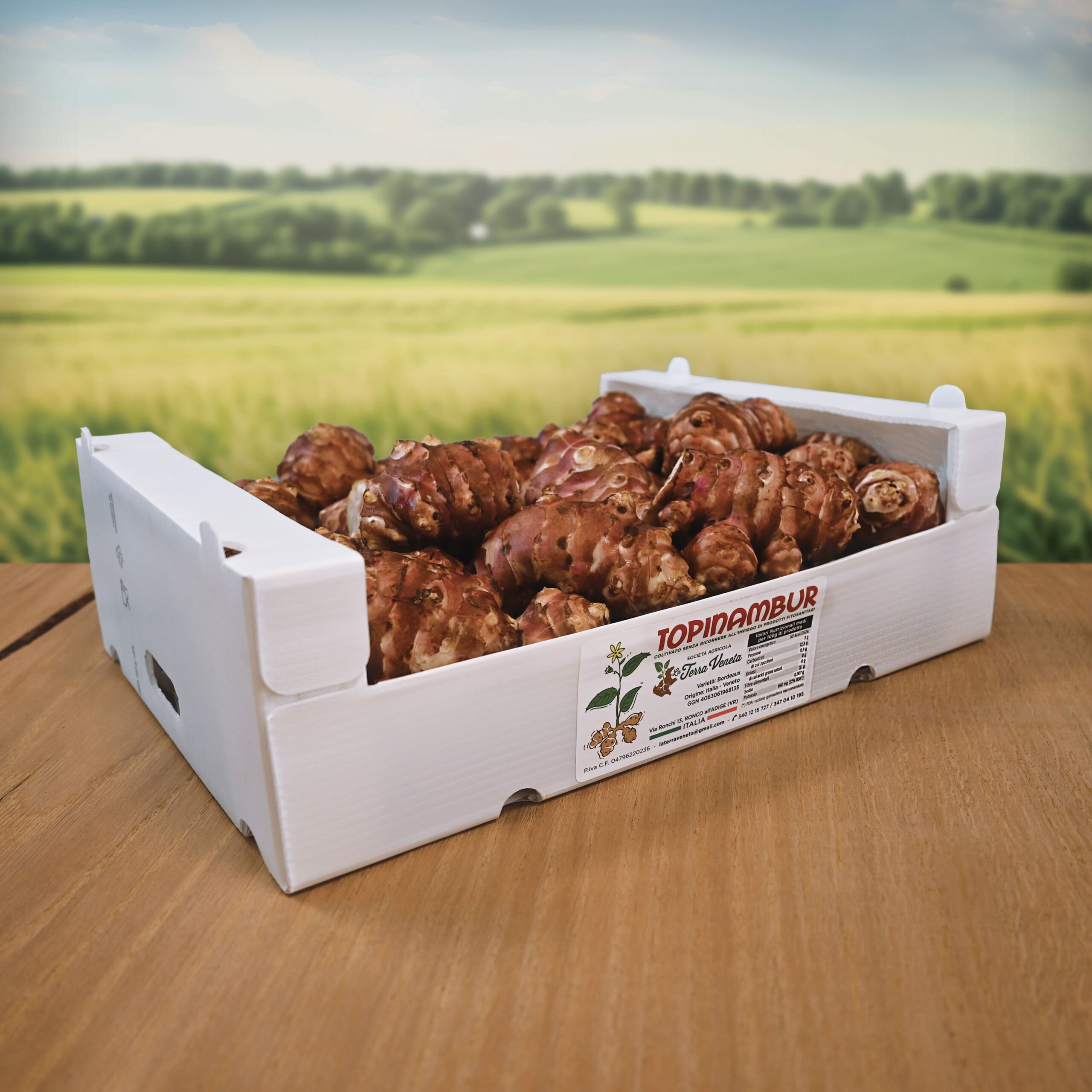 Questa pianta appartiene ad una grande famiglia che spesso viene confusa con il girasole. I suoi fiori sono infatti di un giallo caldo brillante, ma più piccoli. I topinambur hanno una forma irregolare e bitorzoluta, la buccia rossastra, l’interno bianco e il sapore del carciofo.